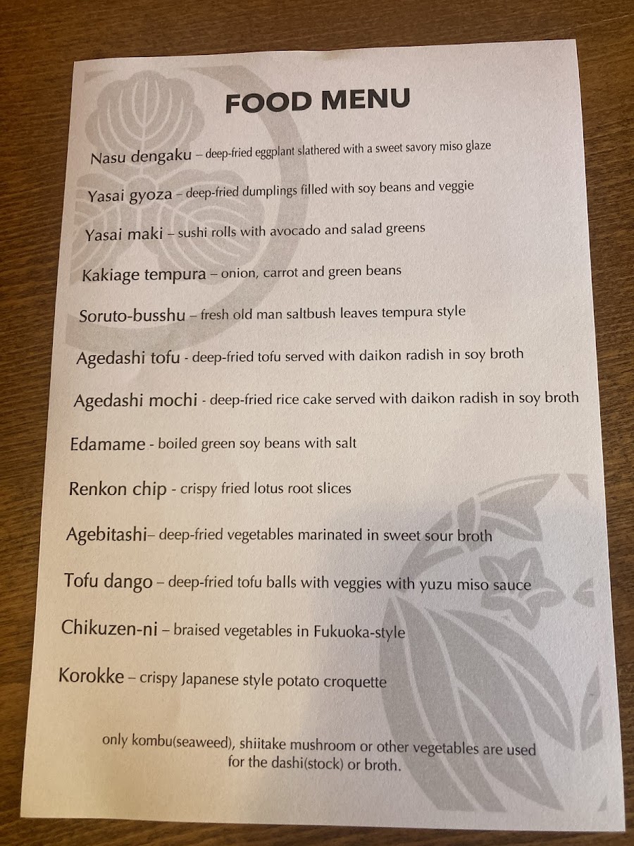 With veggie gyoza dumplings, tofu teriyaki, salad, veggie tempura and rice. (gluten-free and vegan options are not available).